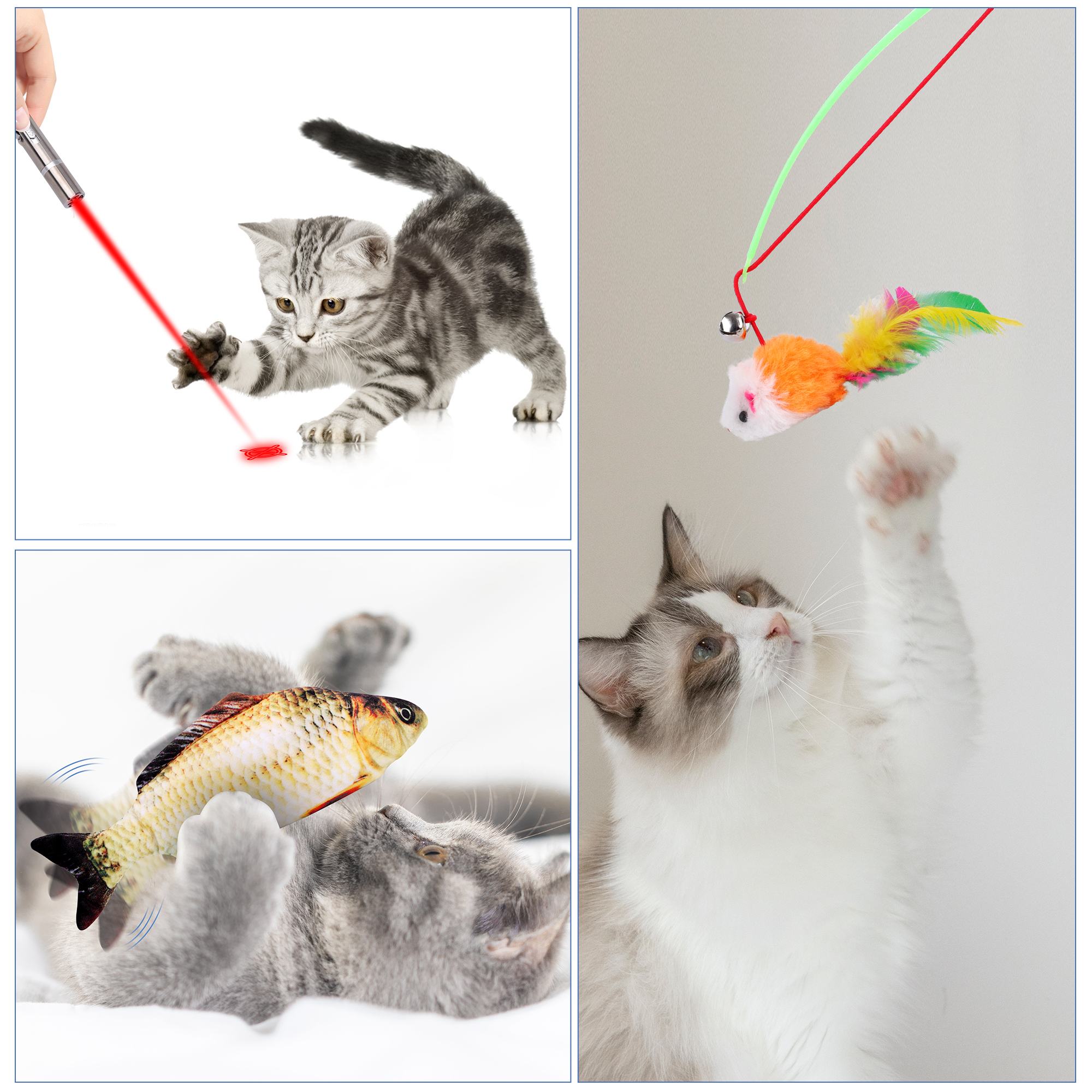 Figoal 3in1 Cat Toy Set For Teasing Cats Electric Moving Fish Flopping Fish Toy Laser Pen Plush Interactive Walmart Com